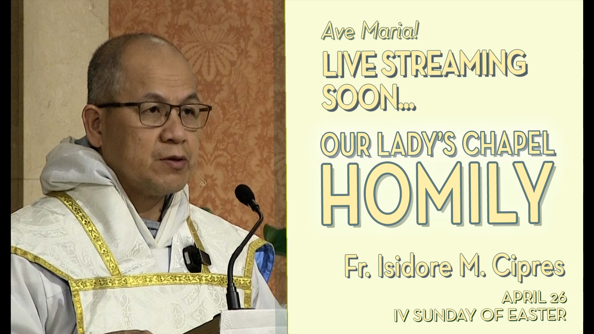 Fr. Isidore M. CipresHomilyNew Bedford, MA April 26, 2026 Be True Sheep, Trust Christ’s Voice – Apr 26 – Homily – Fr Isidore Fr Isidore gives the homily at Our Lady's Chapel, New Bedford, on Apr 26, 2026, calling Catholics to be good sheep of the Good Shepherd Jesus by trusting, having firm conviction in… apostolate 0